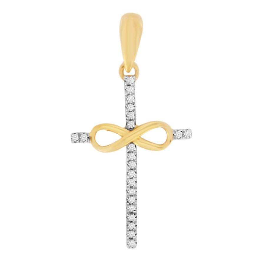 LADIES CROSS PENDANT 0.05CT ROUND DIAMOND 10K YELLOW GOLD