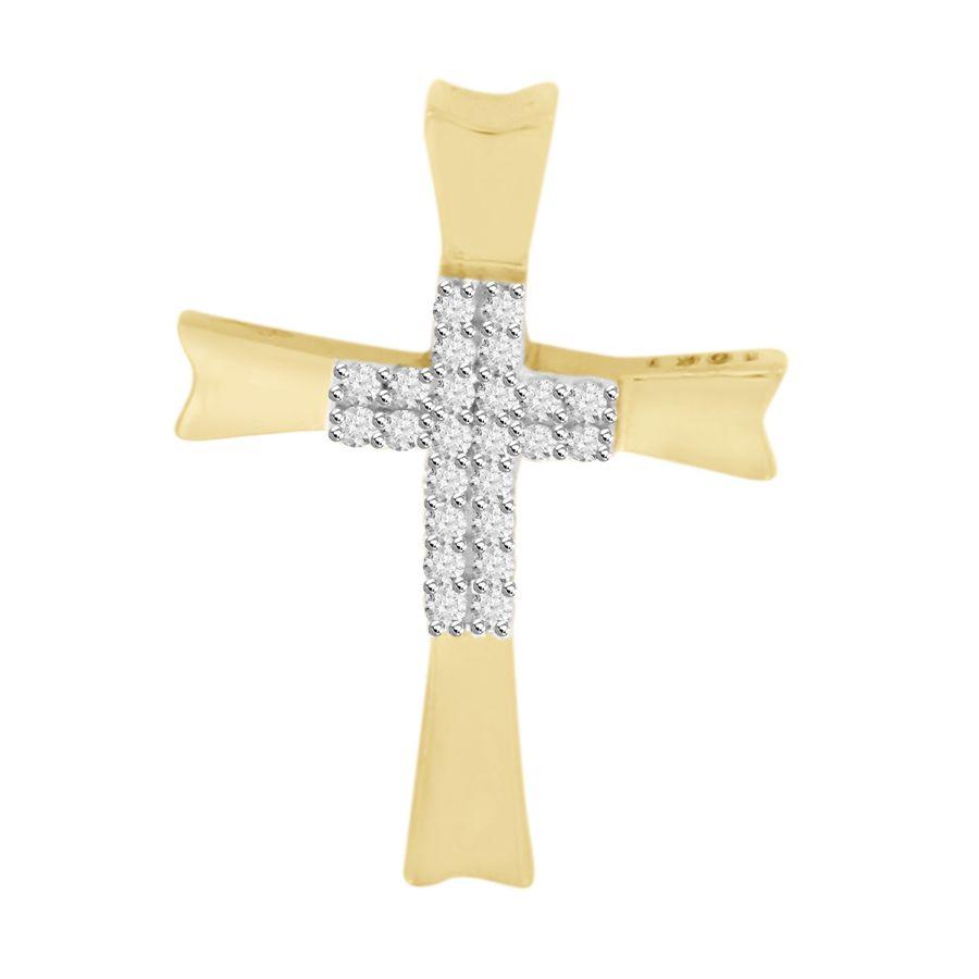 LADIES CROSS PENDANT 0.05CT ROUND DIAMOND 14K YELLOW GOLD