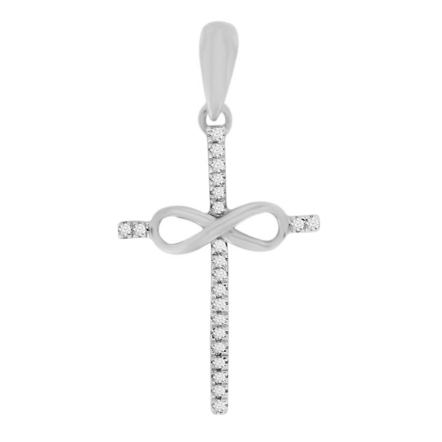 LADIES CROSS PENDANT 0.05CT ROUND DIAMOND STERLING SILVER/WHITE GOLD