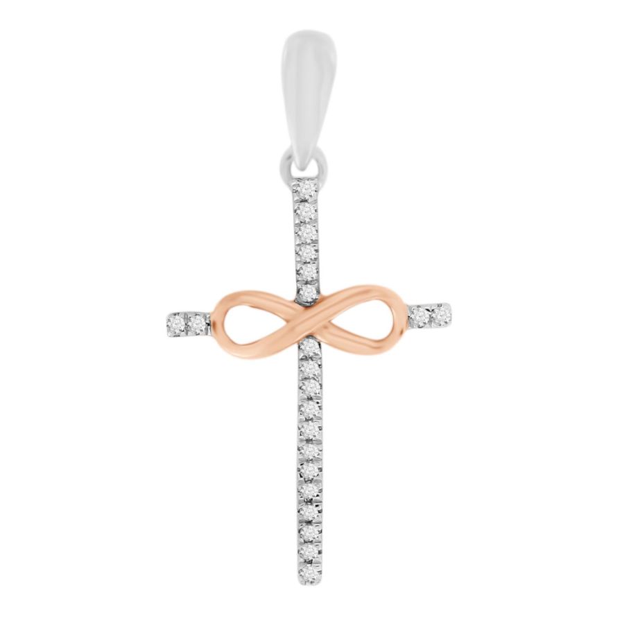 LADIES CROSS PENDANT 0.06CT ROUND DIAMOND 10K WHITE/ROSE GOLD