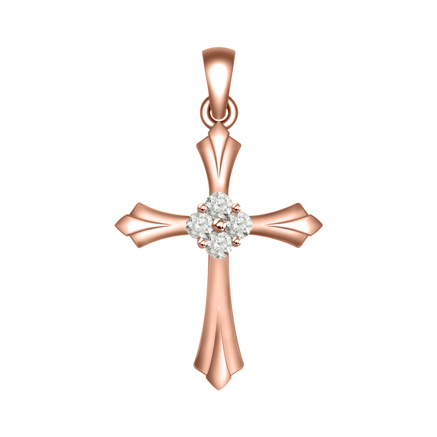 LADIES CROSS PENDANT 0.10CT ROUND DIAMOND 10K ROSE GOLD