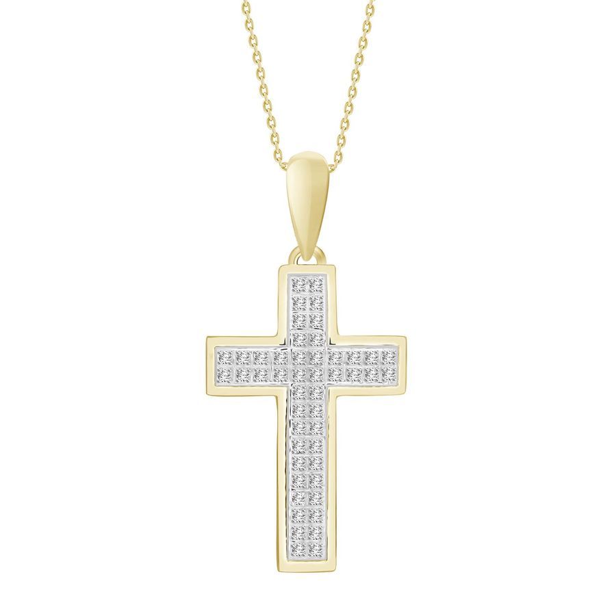 LADIES CROSS PENDANT 0.10CT ROUND DIAMOND 10K YELLOW GOLD