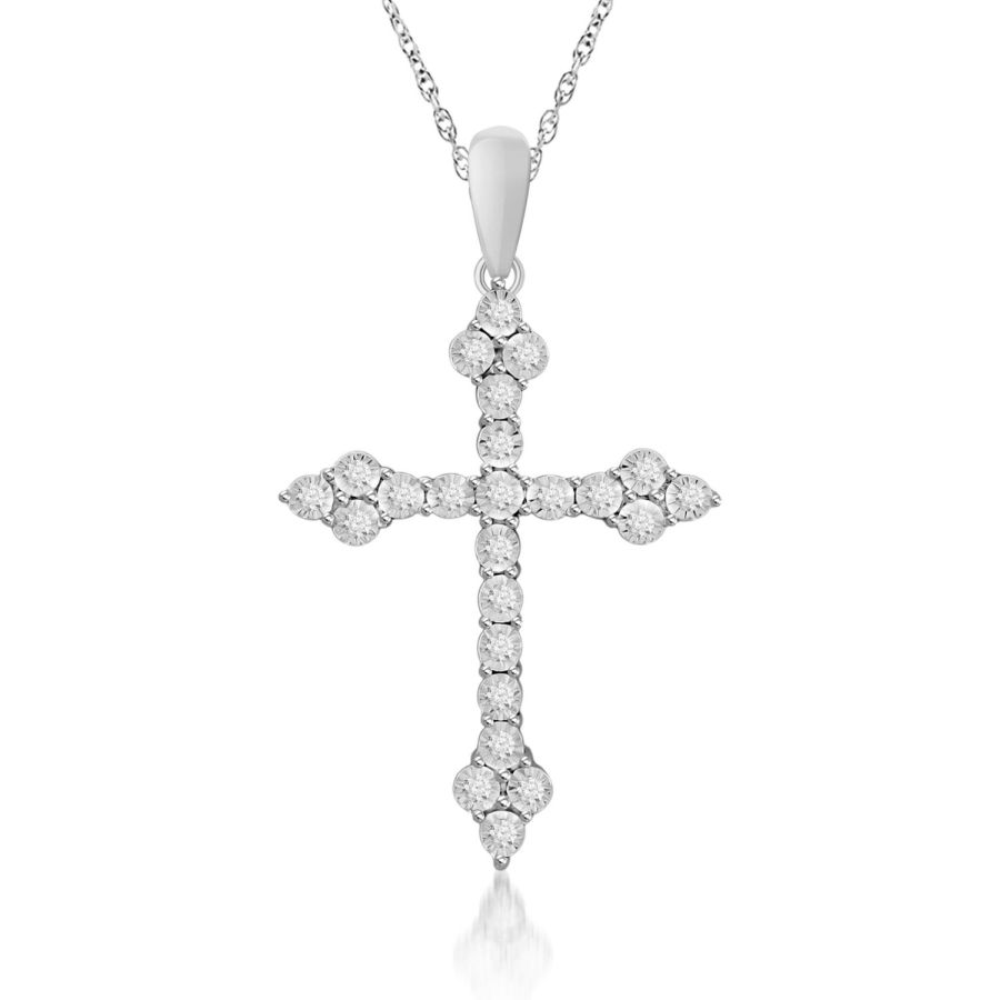 LADIES CROSS PENDANT 0.13CT ROUND DIAMOND STERLING SILVER/WHITE GOLD