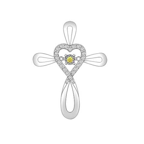 LADIES CROSS PENDANT 0.15CT ROUND CANARY DIAMOND 14K WHITE/YELLOW GOLD