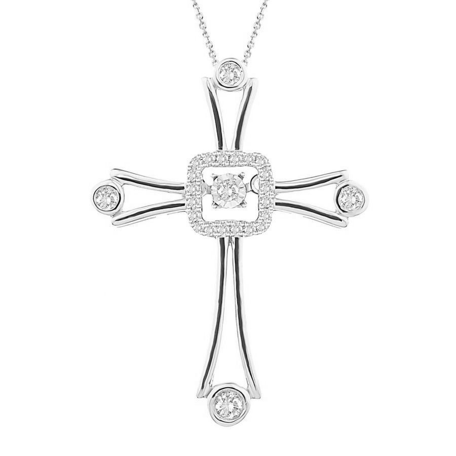 LADIES CROSS PENDANT WITH CHAIN 0.15CT ROUND DIAMOND 10K WHITE GOLD $369.99