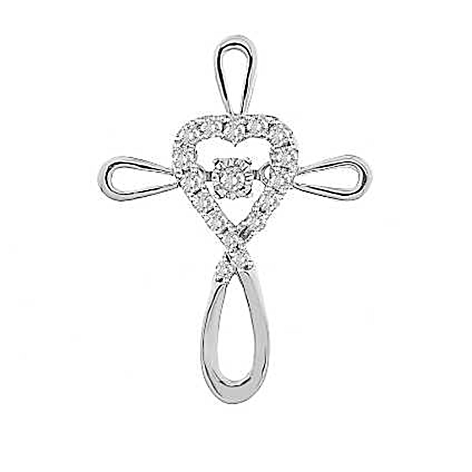 LADIES CROSS PENDANT 0.15CT ROUND DIAMOND 10K WHITE GOLD