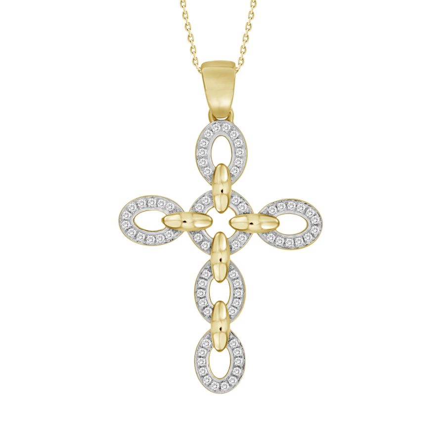 LADIES CROSS PENDANT 0.15CT ROUND DIAMOND 10K YELLOW GOLD