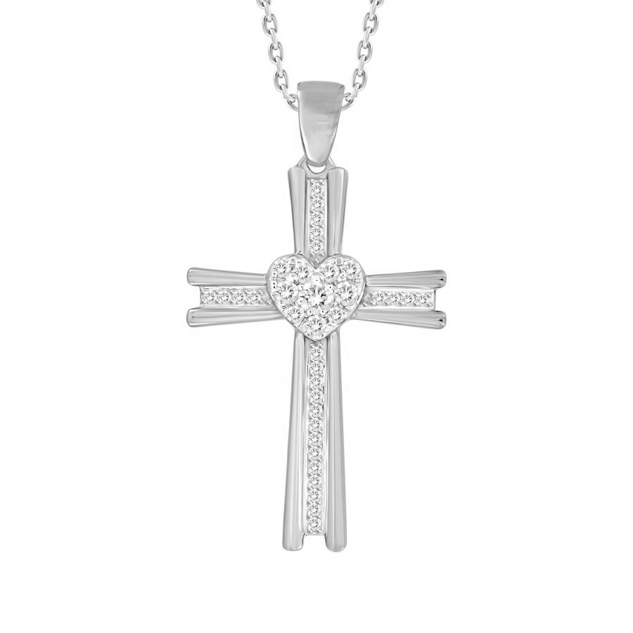 LADIES CROSS PENDANT 0.25CT ROUND DIAMOND 10K WHITE GOLD
