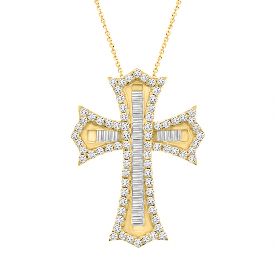 Home Pendants/charms LADIES CROSS PENDANT 0.33CT ROUND/BAGUETTE DIAMOND 10K YELLOW GOLD
