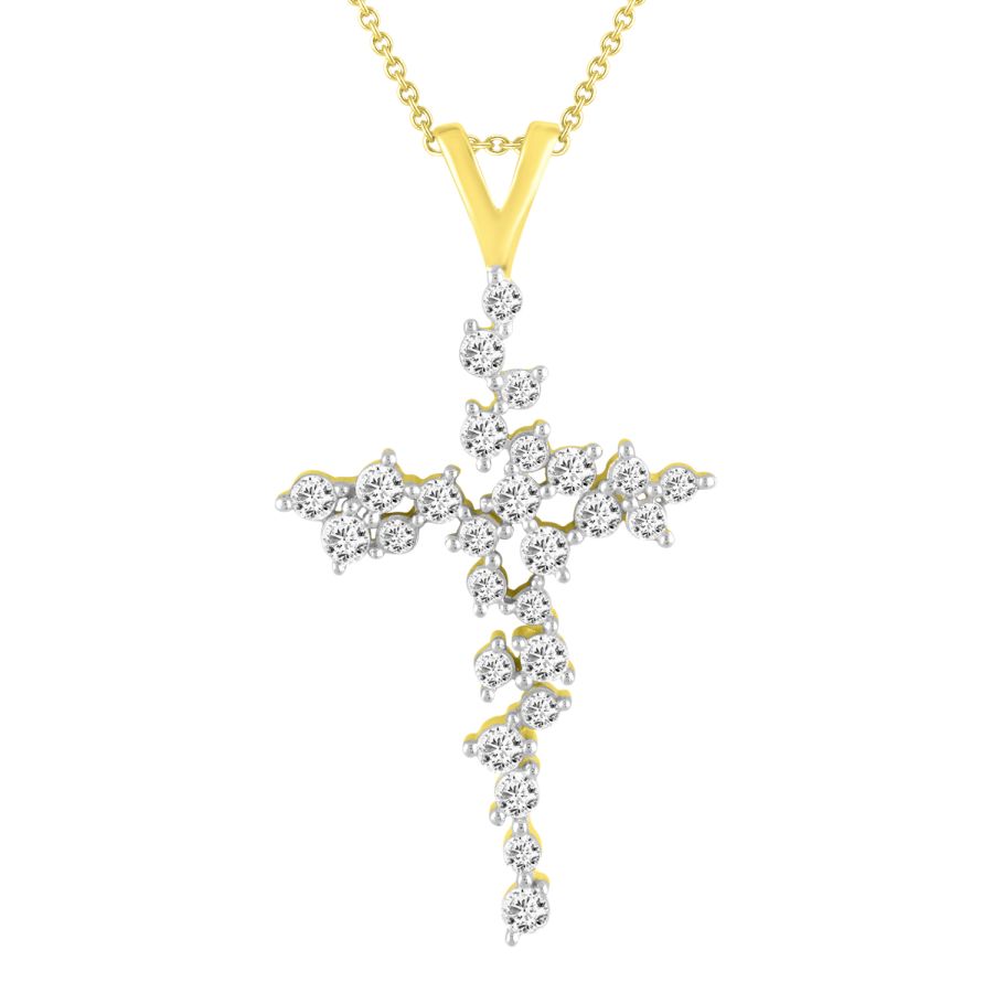 LADIES CROSS PENDANT 0.50CT ROUND DIAMOND 10K YELLOW GOLD
