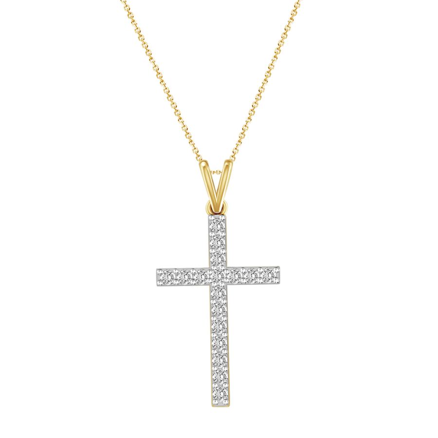 LADIES CROSS PENDANT 0.50CT ROUND DIAMOND 10K YELLOW GOLD