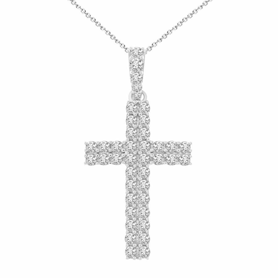 LADIES CROSS PENDANT 1.00CT ROUND DIAMOND 14K WHITE GOLD