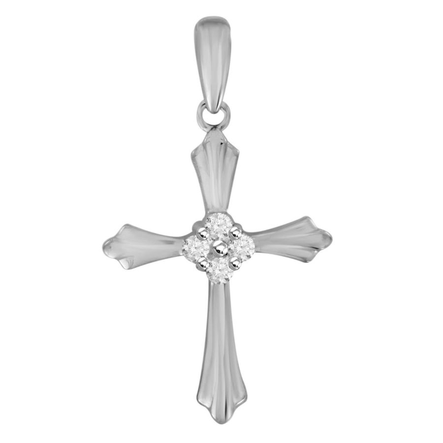 LADIES CROSS PENDANT WITH CHAIN 0.10CT ROUND DIAMOND 10K WHITE GOLD
