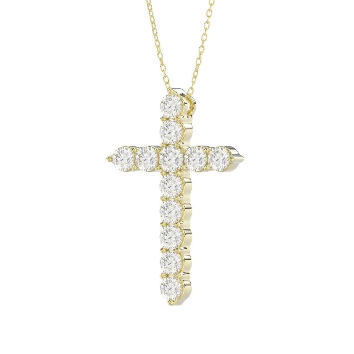 LADIES CROSS PENDANT WITH CHAIN 2CT ROUND DIAMOND 14K YELLOW GOLD
