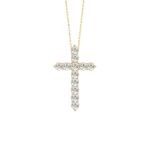 Home Necklaces & Pendants LADIES CROSS PENDANT WITH CHAIN 4CT ROUND DIAMOND 14K YELLOW GOLD