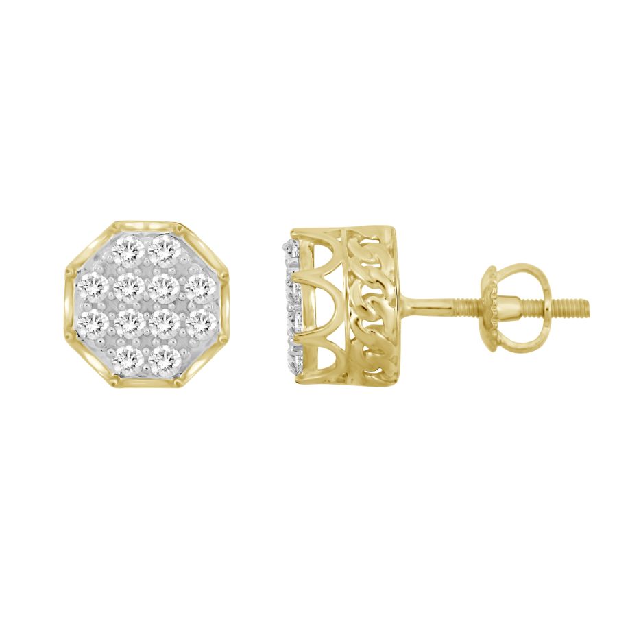 LADIES CUBAN EARRINGS 0.25CT ROUND DIAMOND 10K YELLOW GOLD