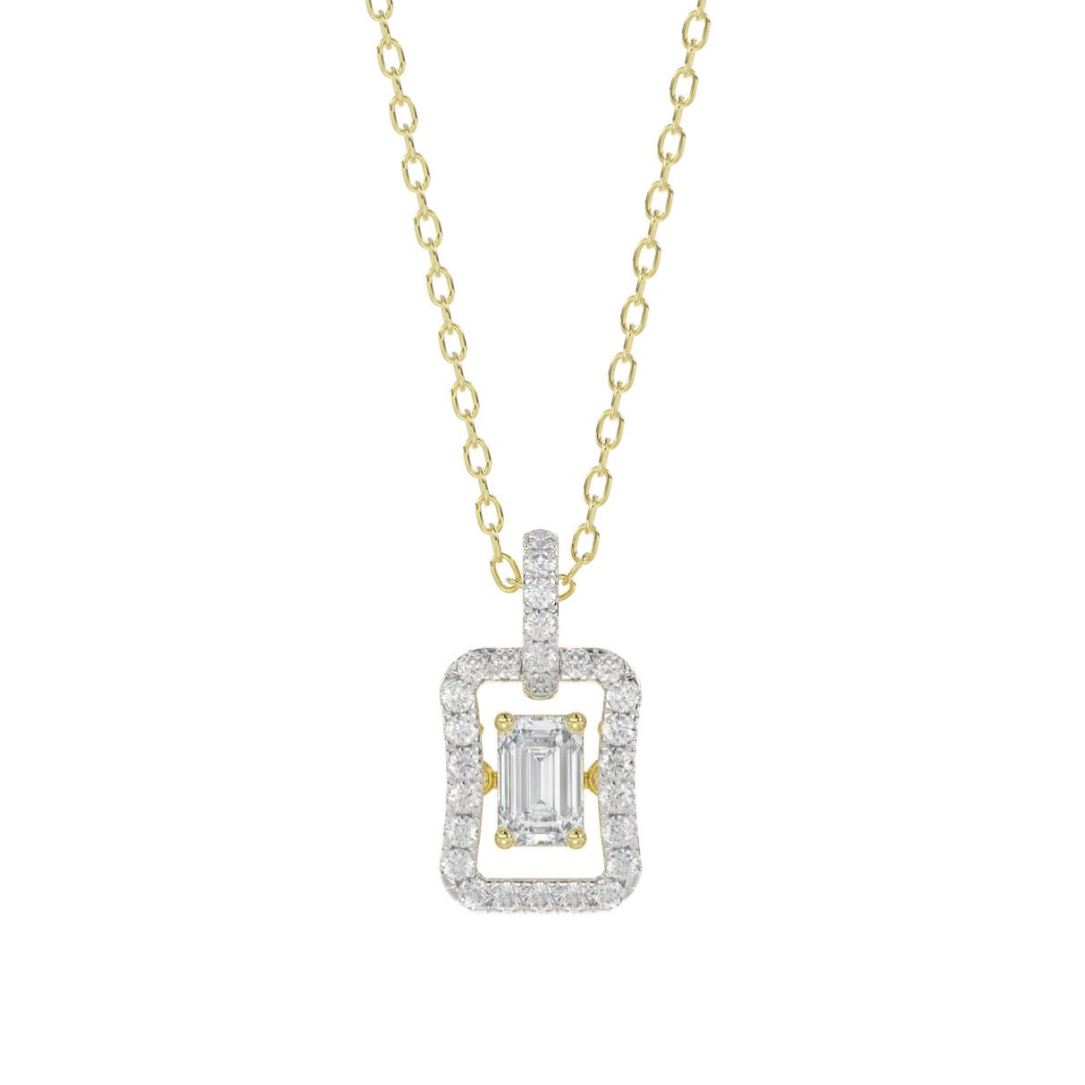 Home Collections LADIES DANCING DIAMOND PENDANT WITH CHAIN 3/4CT ROUND/EMERALD DIAMOND 14K YELLOW GOLD (CENTER STONE EMERALD DIAMOND 1/2CT)