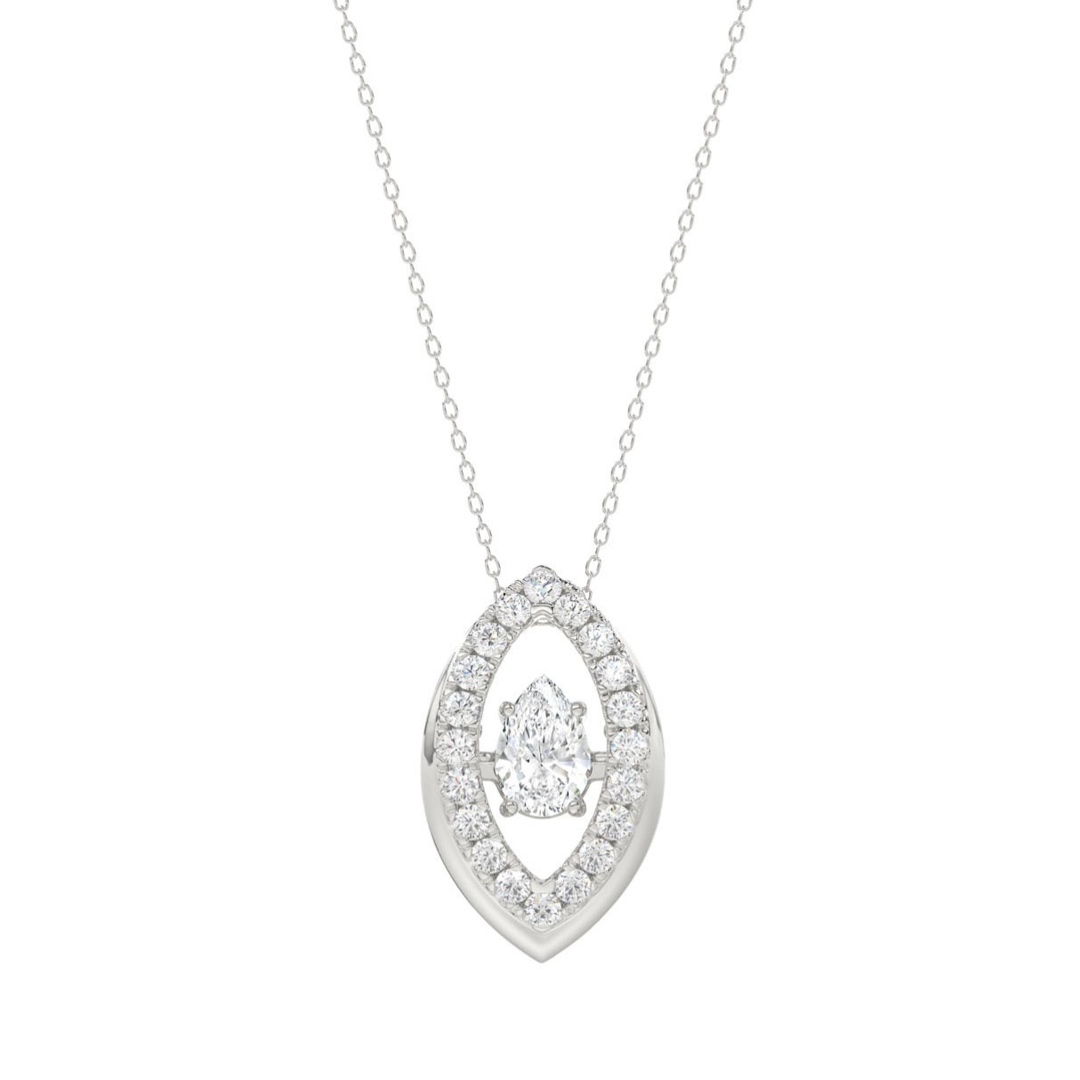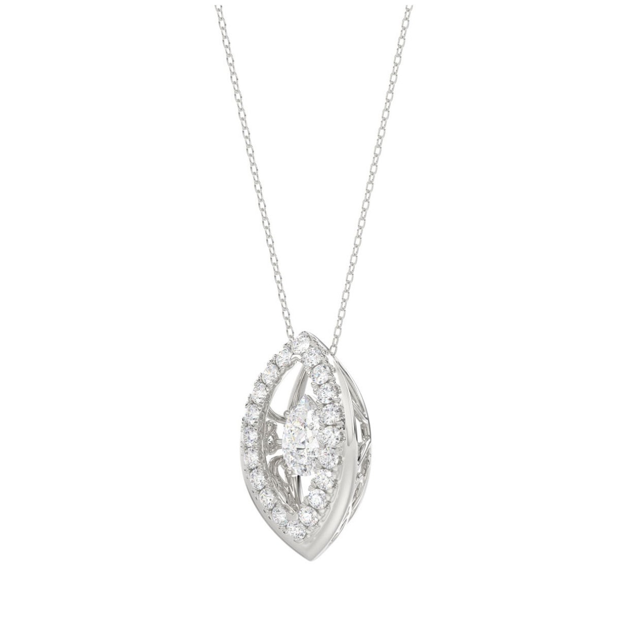 LADIES DANCING DIAMOND PENDANT WITH CHAIN 3/4CT ROUND/PEAR DIAMOND 14K WHITE GOLD (CENTER STONE PEAR DIAMOND 1/2CT)