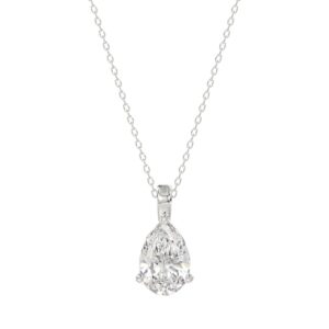 LADIES SOLITAIRE PENDANT WITH CHAIN 1CT PEAR DIAMOND 14K WHITE GOLD
