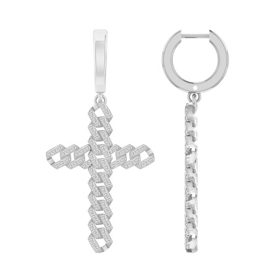 LADIES DANGLE EARRING 0.25CT ROUND DIAMOND 10K WHITE GOLD
