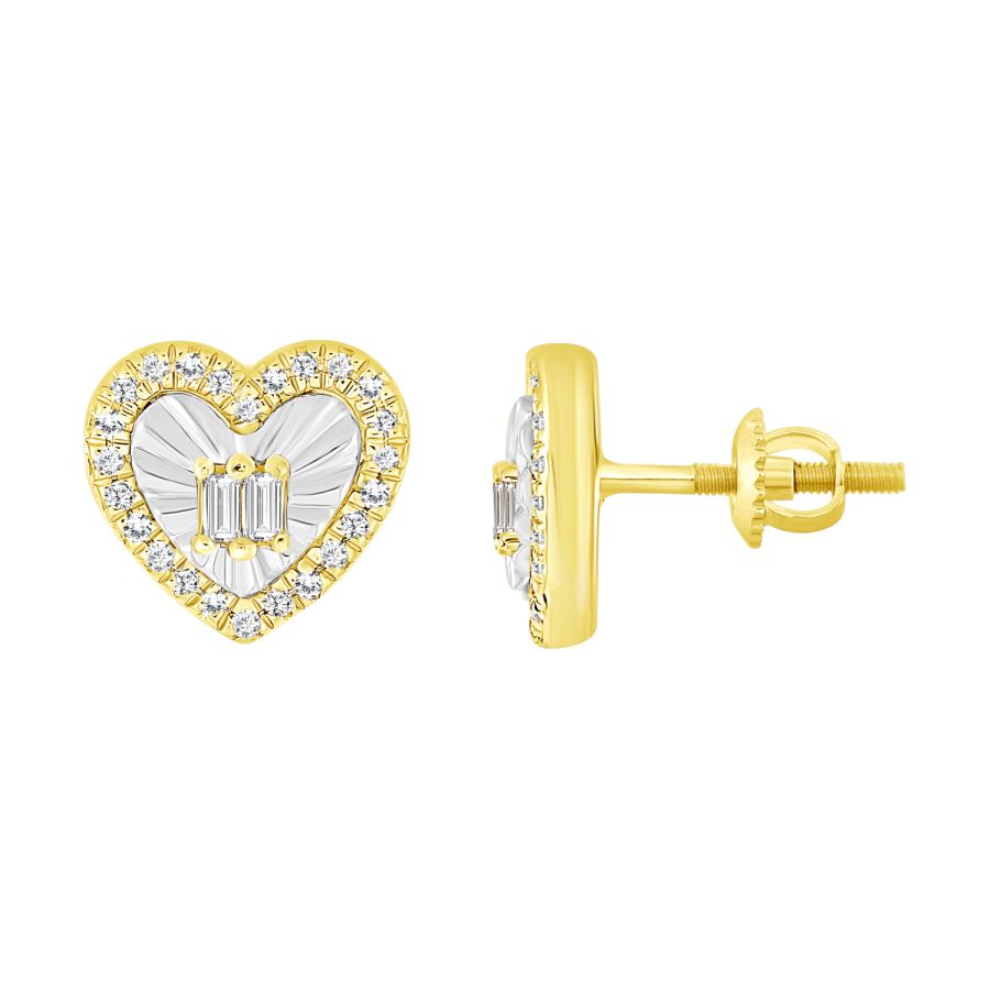 LADIES EARRING 0.16CT BAGUETTE/ROUND DIAMOND 10K YELLOW GOLD