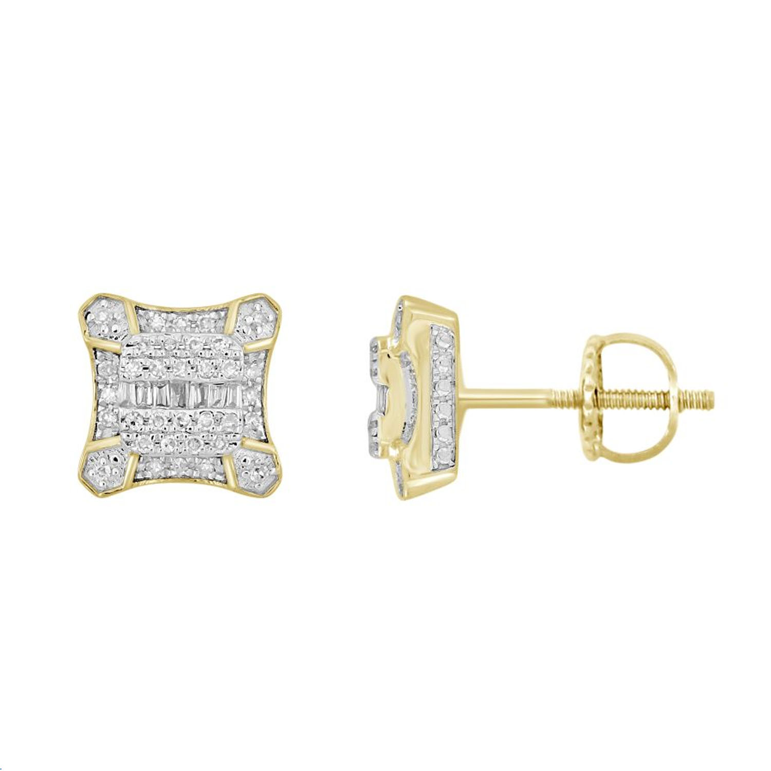 LADIES EARRING 0.25CT ROUND/BAGUETTE DIAMOND 10K YELLOW GOLD