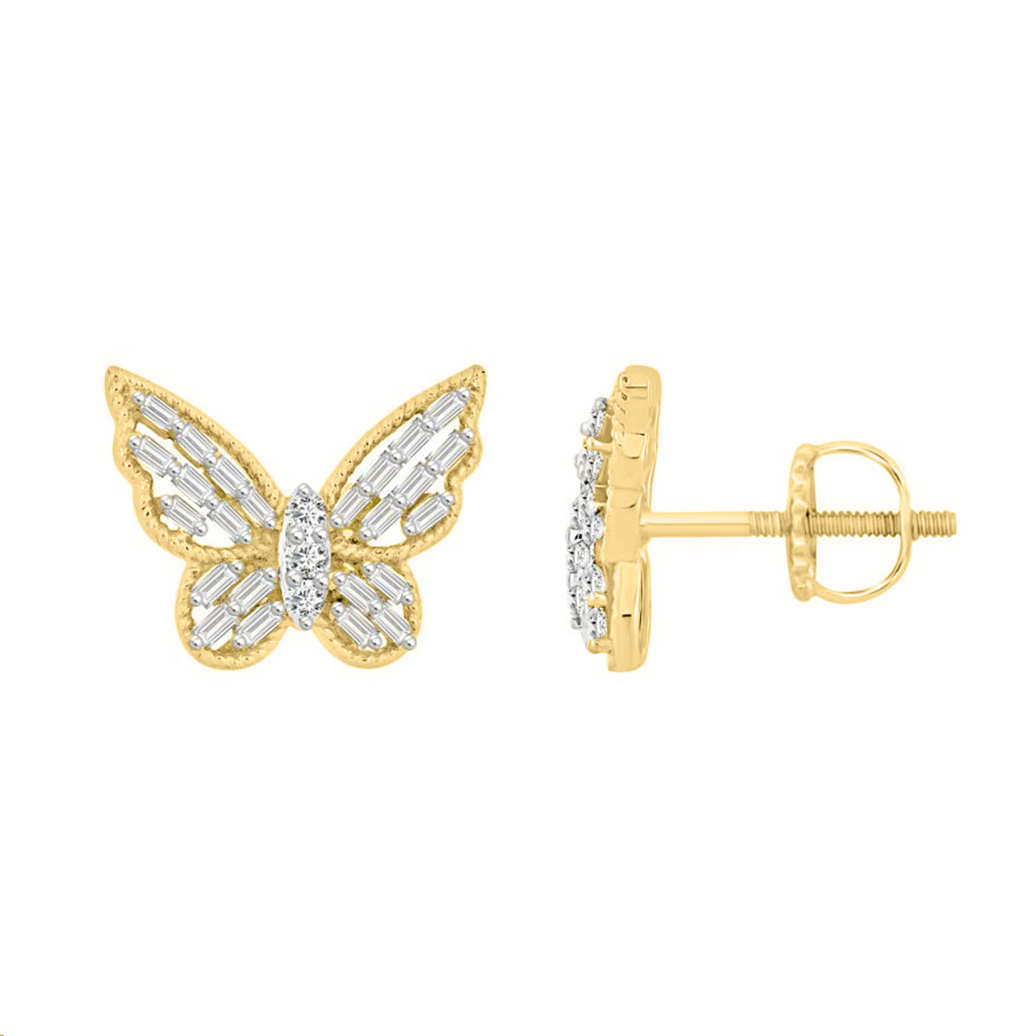 Home Earrings LADIES EARRING 0.33CT ROUND/BAGUETTE DIAMOND 14K YELLOW GOLD