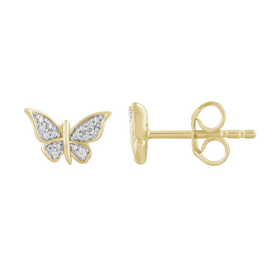LADIES EARRINGS 0.05CT ROUND DIAMOND 10K YELLOW GOLD