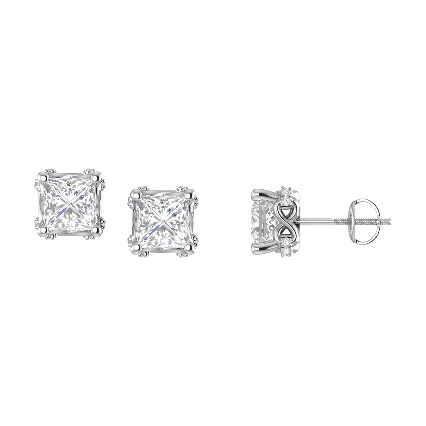 LADIES EARRINGS 0.05CT ROUND DIAMOND 14K WHITE GOLD (CENTER STONE 1 CT PRINCESS DIAMOND)