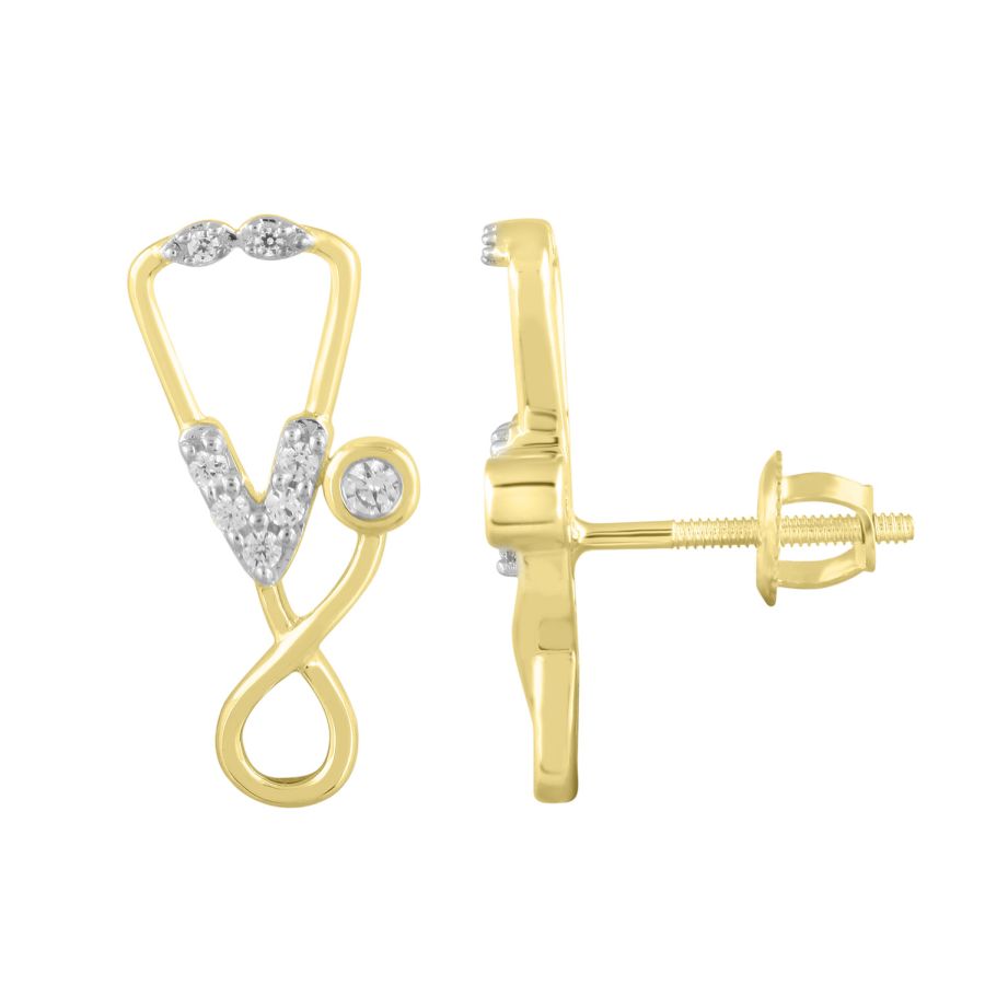 LADIES EARRINGS 0.10CT ROUND DIAMOND 10K YELLOW GOLD
