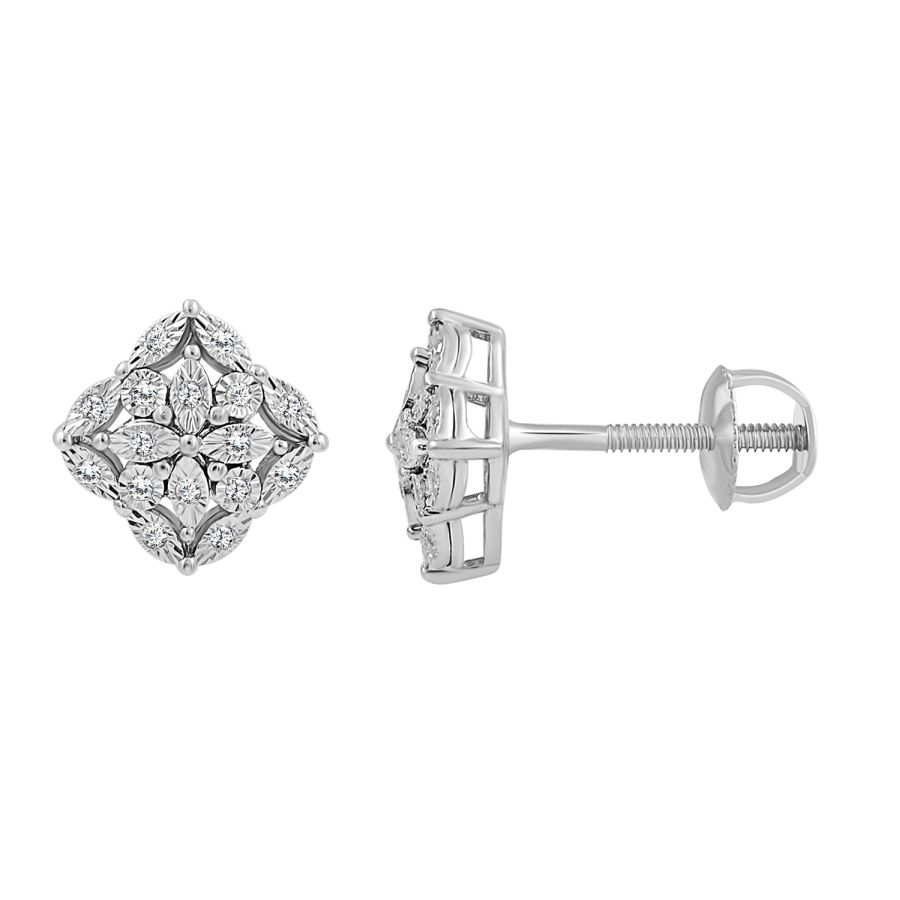 LADIES EARRINGS 0.10CT ROUND DIAMOND STERLING SILVER/WHITE GOLD