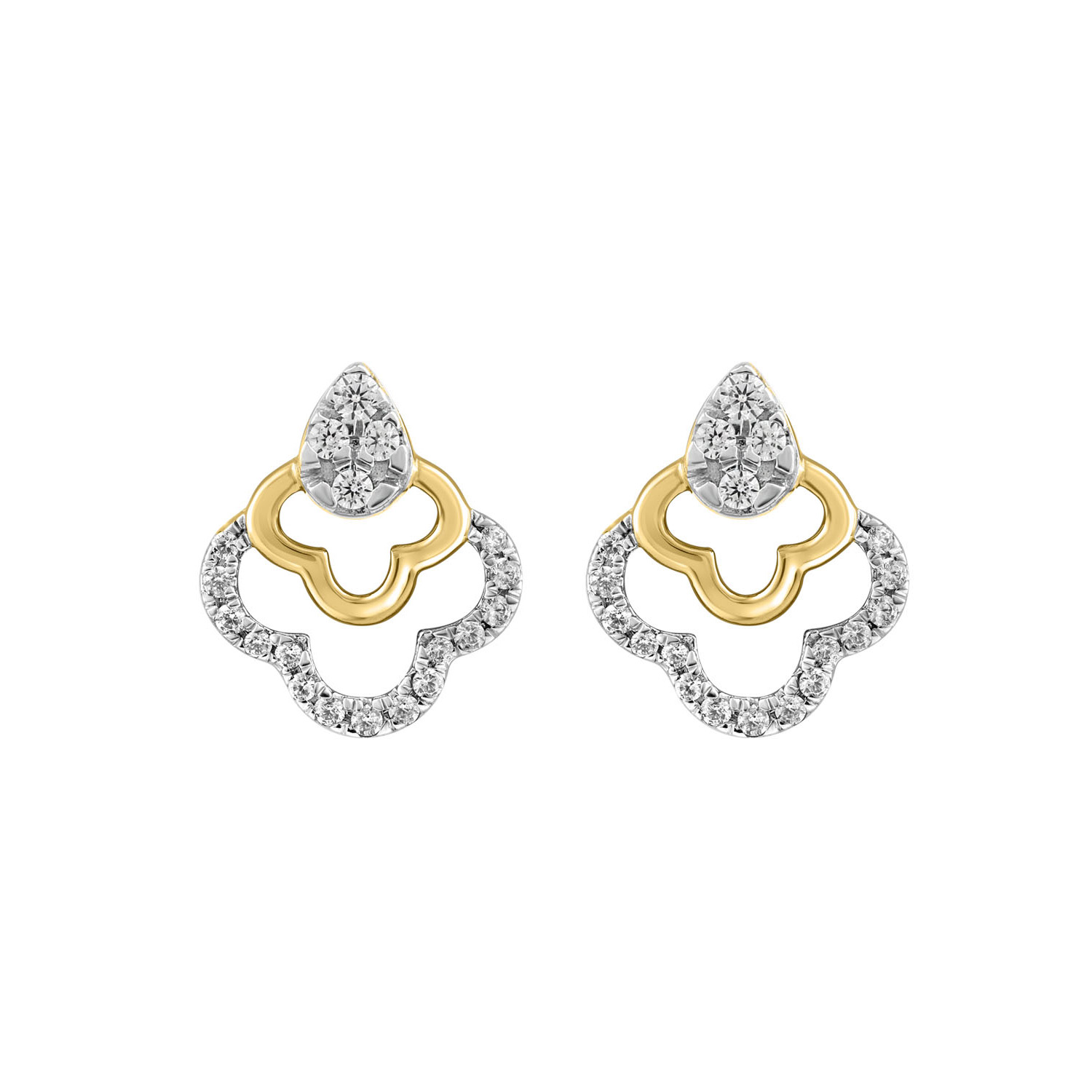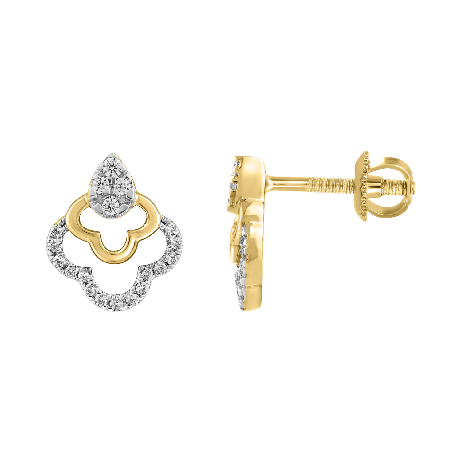LADIES EARRINGS 0.13CT ROUND DIAMOND 14K YELLOW GOLD