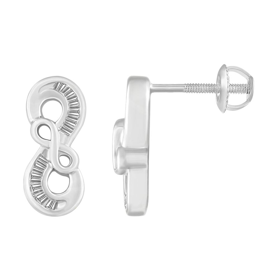 LADIES STUD EARRINGS 0.25CT ROUND/BAGUETTE DIAMOND 14K WHITE GOLD