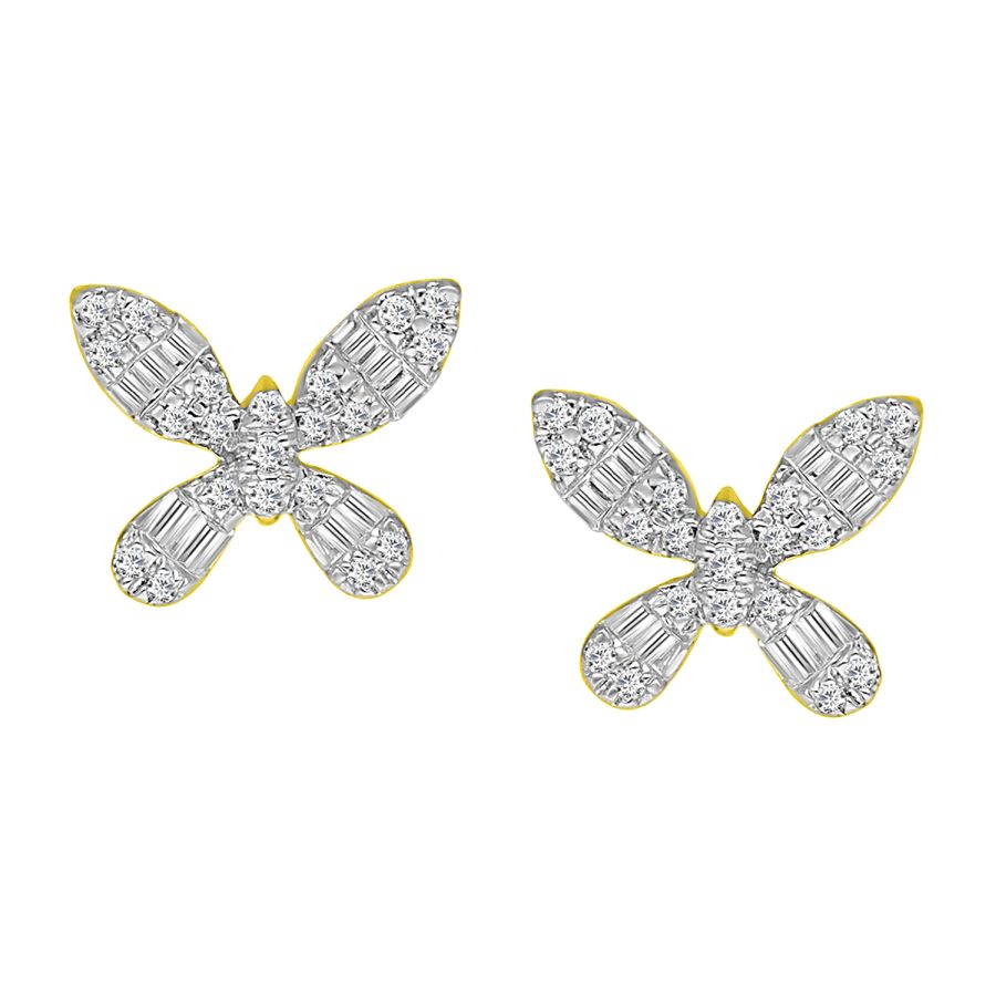 LADIES EARRINGS 0.15CT ROUND/BAGUETTE DIAMOND 10K YELLOW GOLD