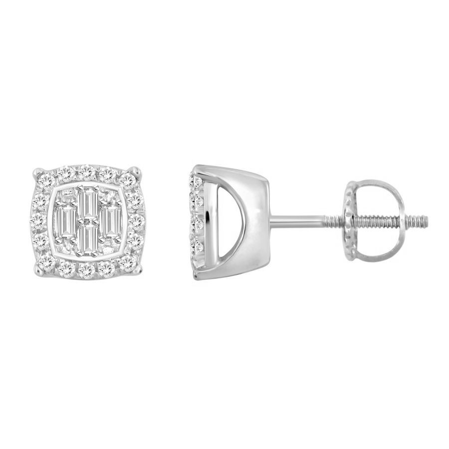 LADIES EARRINGS 0.15CT ROUND/BAGUETTE DIAMOND 14K WHITE GOLD