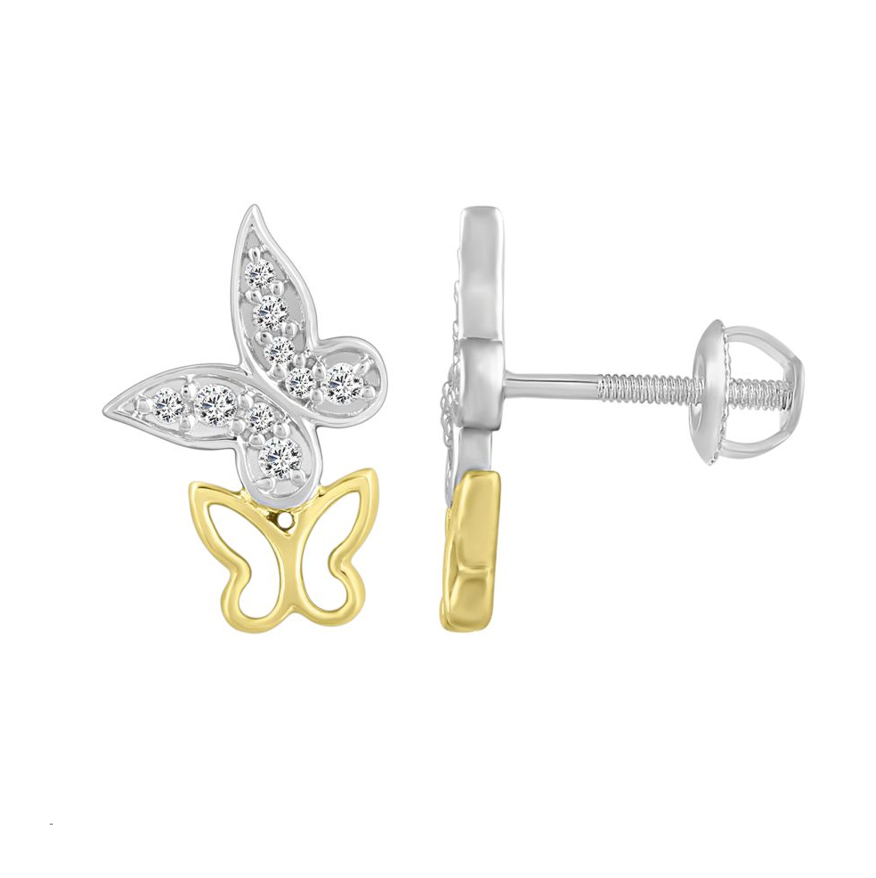 LADIES EARRINGS 0.15CT ROUND DIAMOND 10K/SS WHITE/YELLOW GOLD/STERLING SILVER