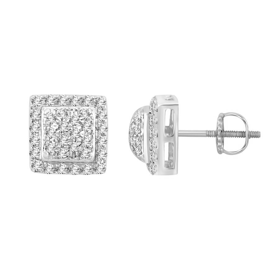 LADIES EARRINGS 0.15CT ROUND DIAMOND 14K WHITE GOLD