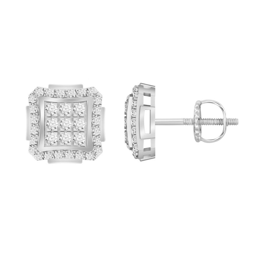 LADIES EARRINGS 1.00CT ROUND DIAMOND 14K WHITE GOLD