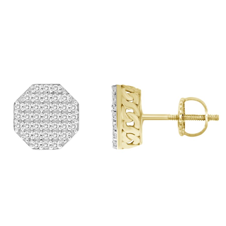 LADIES EARRINGS 0.16CT ROUND DIAMOND STERLING SILVER/YELLOW