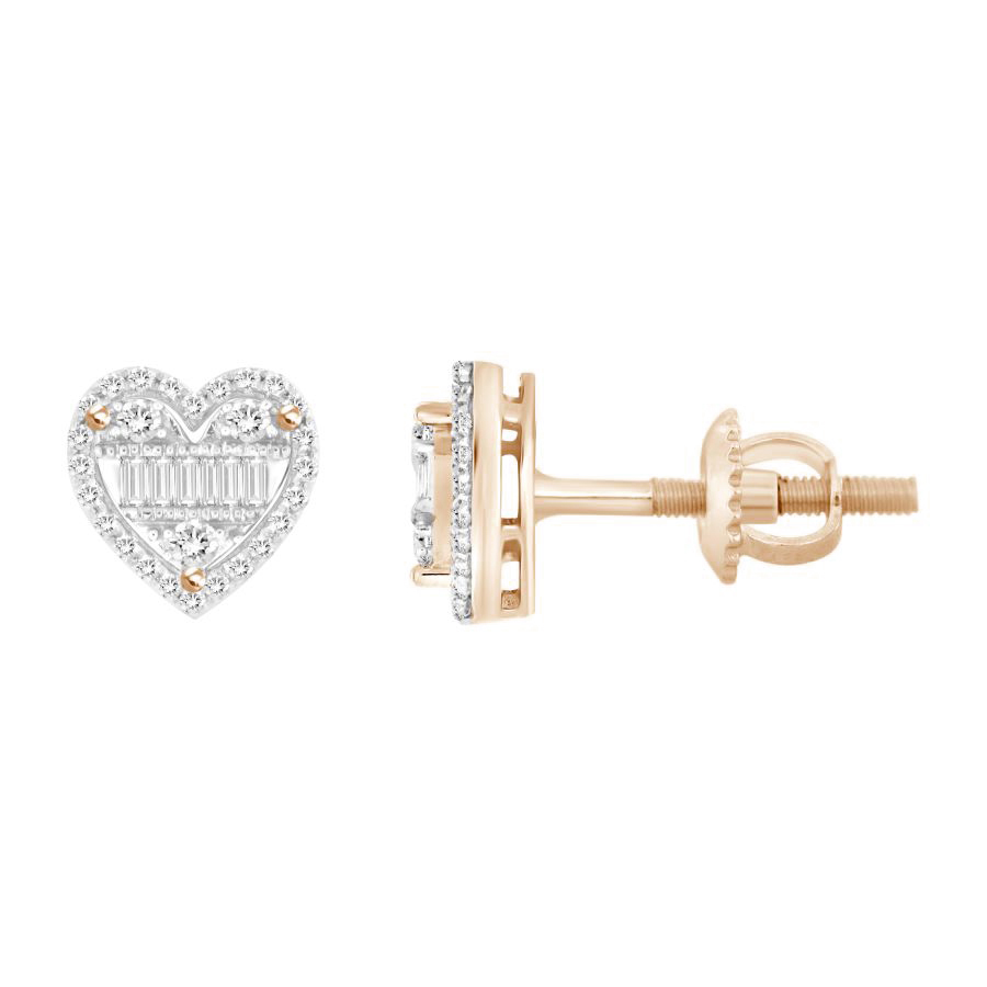 LADIES EARRINGS 0.25CT ROUND/BAGUETTE DIAMOND 10K ROSE GOLD
