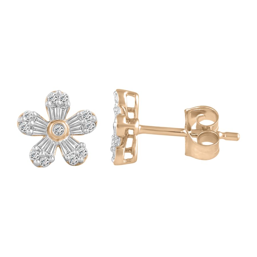 LADIES EARRINGS 0.25CT ROUND/BAGUETTE DIAMOND 10K ROSE GOLD