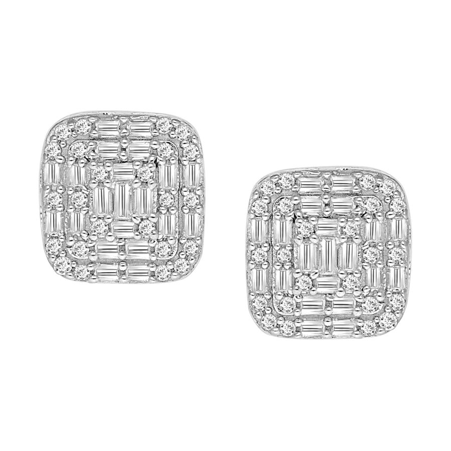 LADIES EARRINGS 0.25CT ROUND/BAGUETTE DIAMOND 10K WHITE GOLD