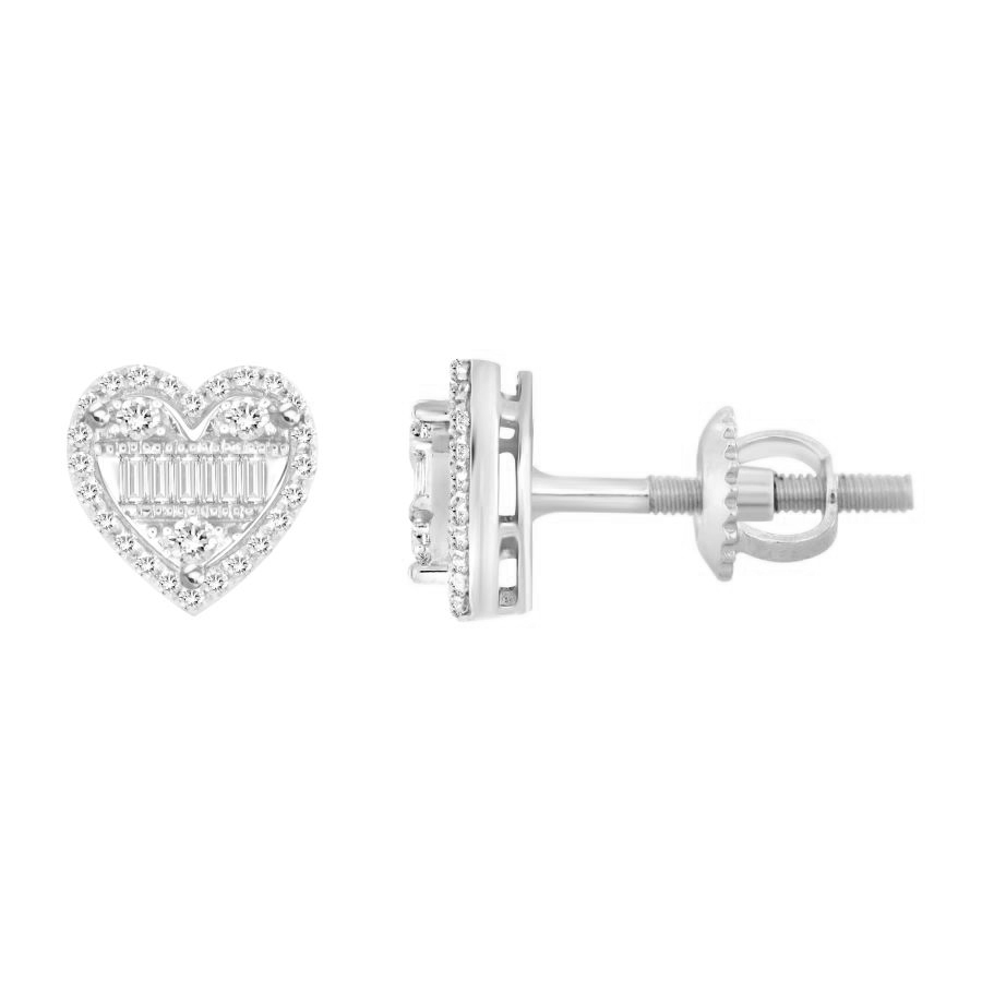 LADIES EARRINGS 0.25CT ROUND/BAGUETTE DIAMOND 10K WHITE GOLD