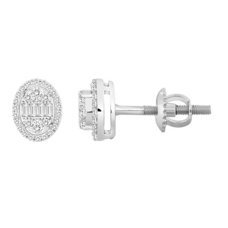 LADIES EARRINGS 0.25CT ROUND/BAGUETTE DIAMOND 10K WHITE GOLD