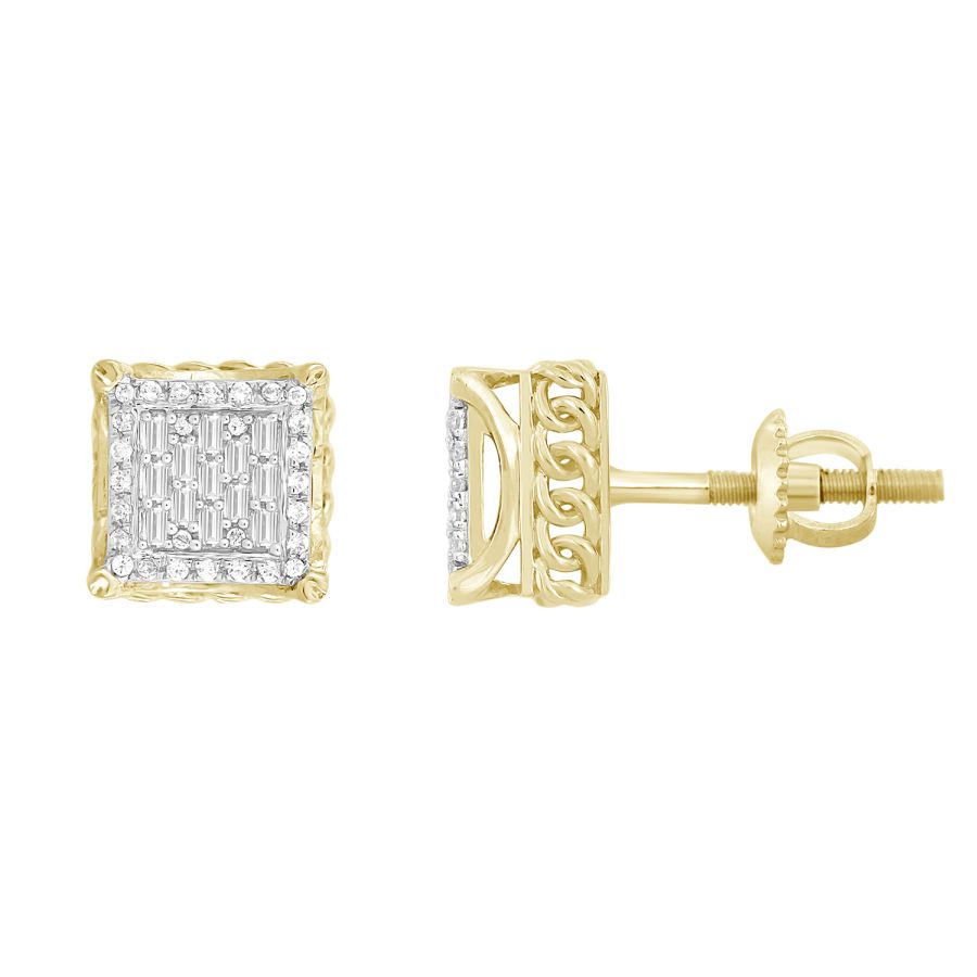 LADIES EARRINGS 0.25CT ROUND/BAGUETTE DIAMOND 10K YELLOW GOLD