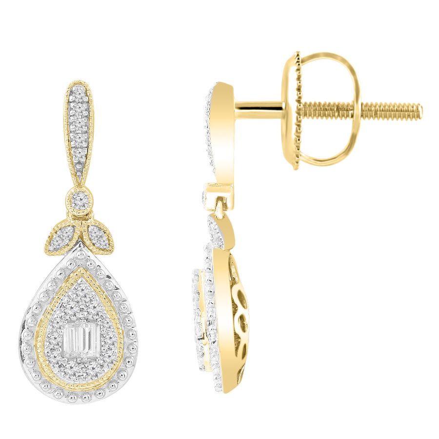 Home Earrings LADIES EARRINGS 0.25CT ROUND/BAGUETTE DIAMOND 10K YELLOW GOLD