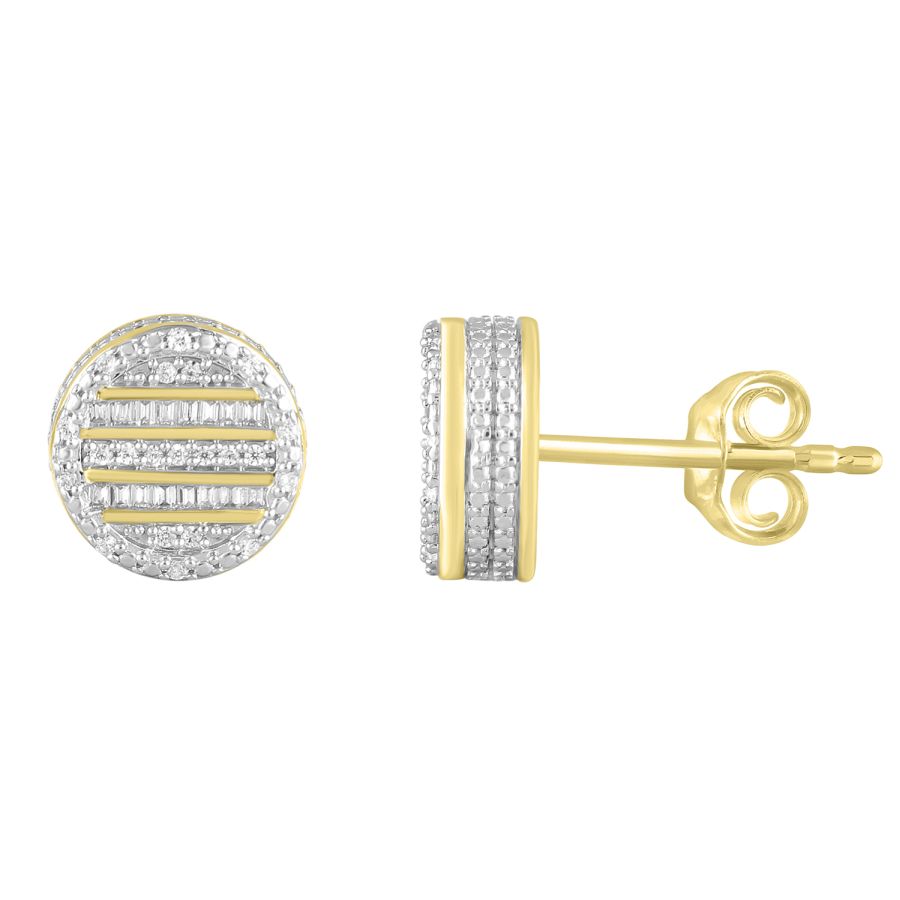 LADIES EARRINGS 0.25CT ROUND/BAGUETTE DIAMOND 10K YELLOW GOLD