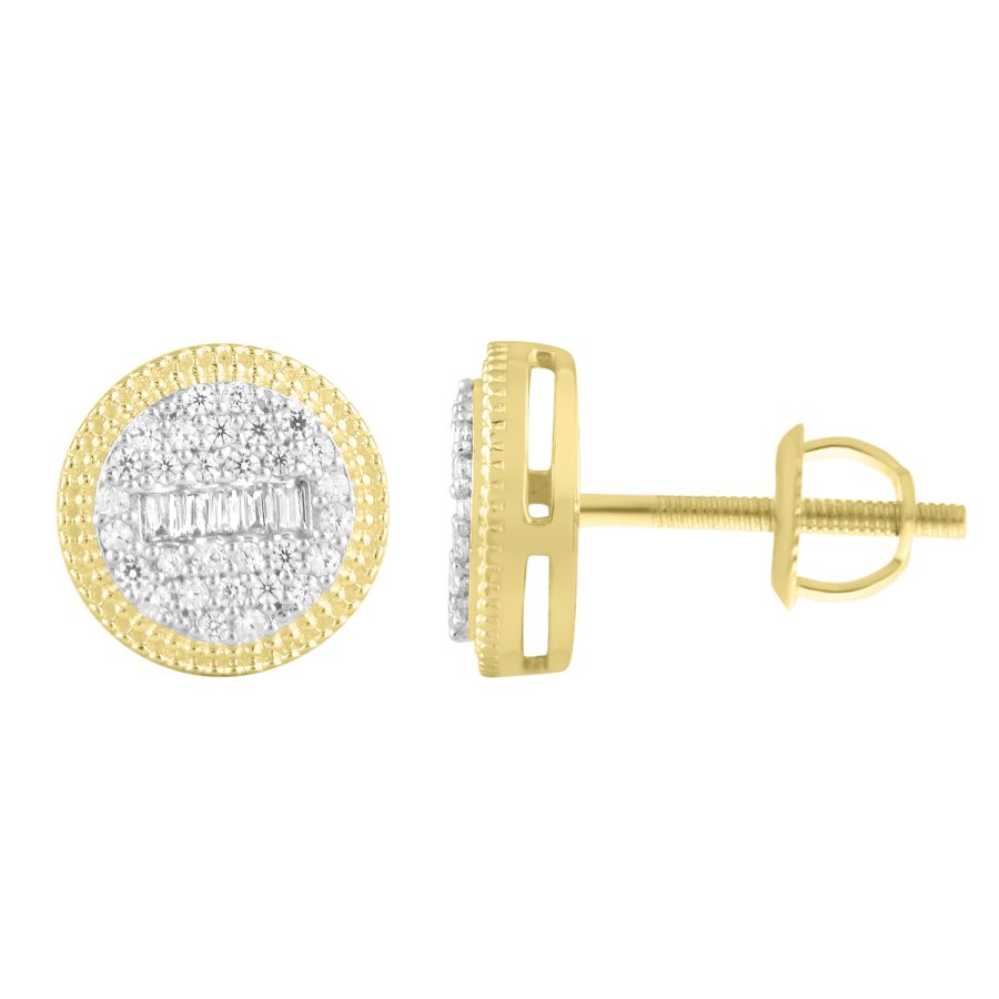 LADIES EARRINGS 0.25CT ROUND/BAGUETTE DIAMOND 10K YELLOW GOLD