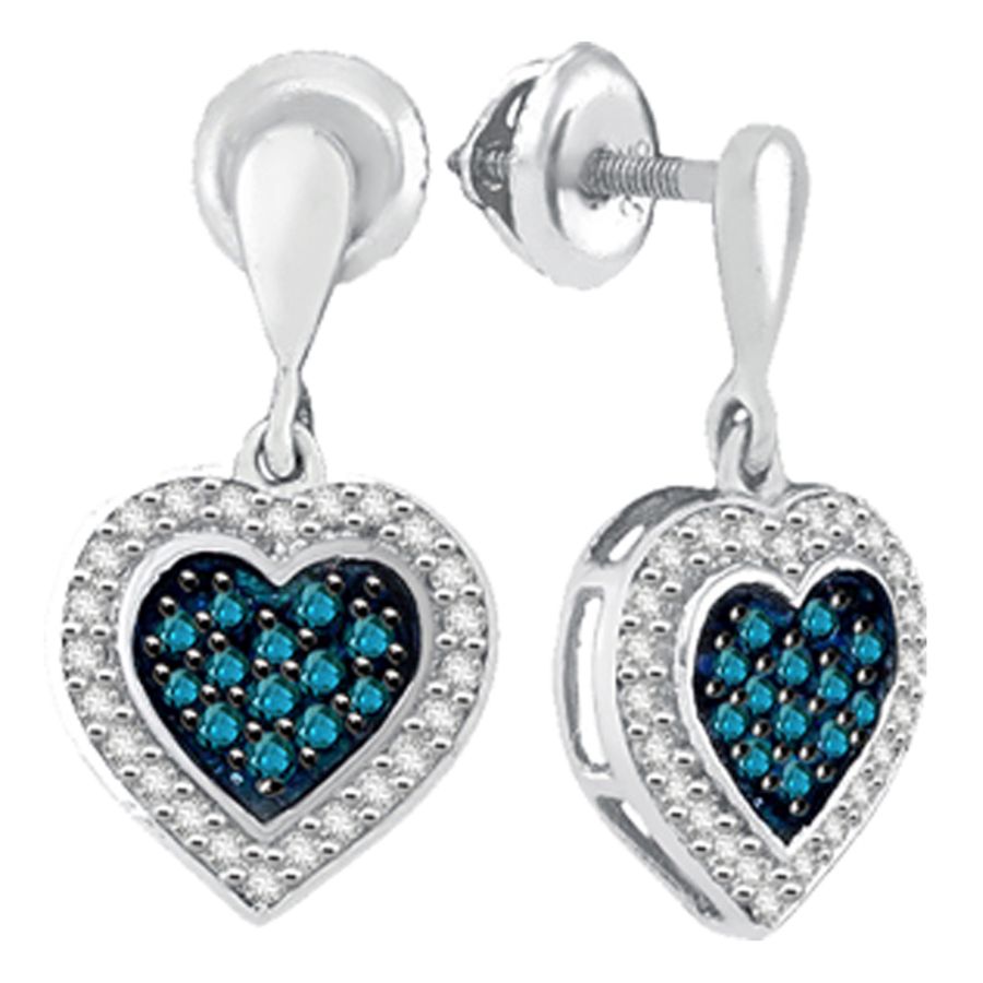 LADIES HEART EARRINGS 0.25CT ROUND BLUE DIAMOND 10K YELLOW GOLD $219.99