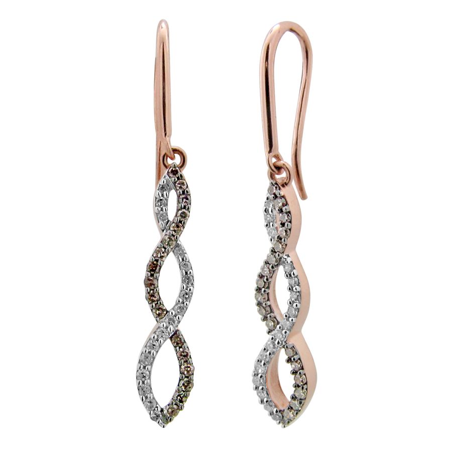 LADIES EARRINGS 0.25CT ROUND DARK BROWN DIAMOND 14K ROSE GOLD